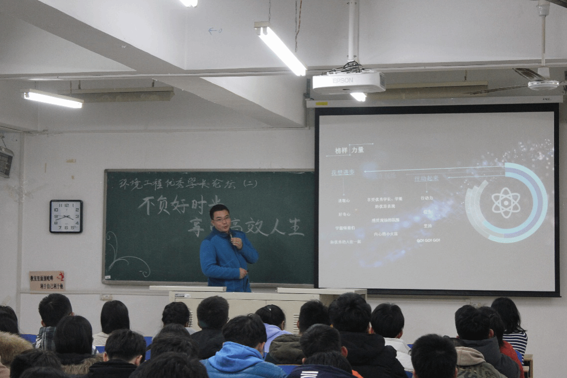 11月28日,由环境工程系与学院分团委联合举办的“优秀学长论坛(第二讲)”在9教203如期举行。此次讲座,环境系特邀请中国科学院生态环境研究中心郑天龙助理研究员前来进行题为“不负好时光-享受高效人生”的主题演讲,由环境系主任汪群慧教授主持。