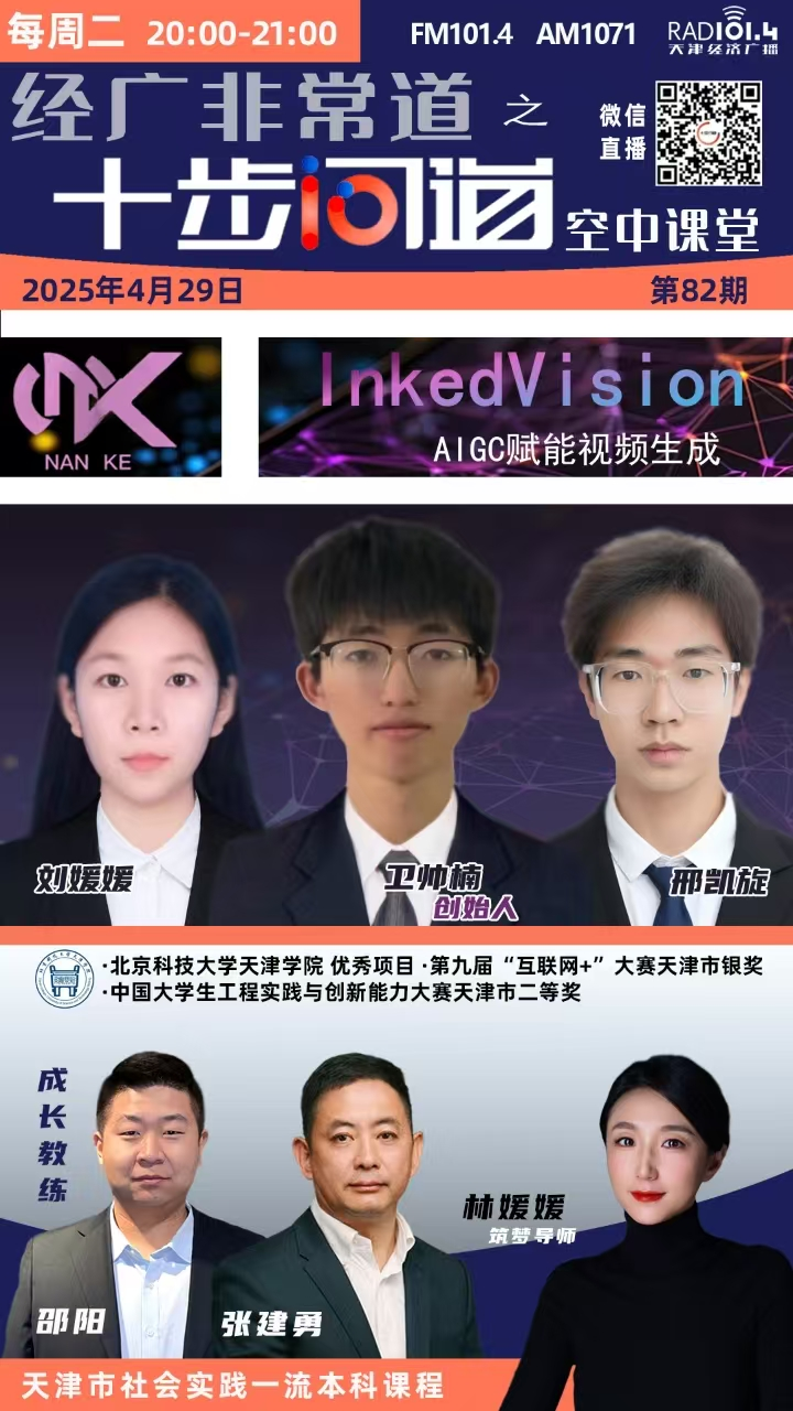 4月29日20:00 - 21:00,我院创业项目团队(刘媛媛、卫帅楠、邢凯旋 )受邀参加天津经济广播FM101.4、AM1071 “经广非常道之十…[详细]