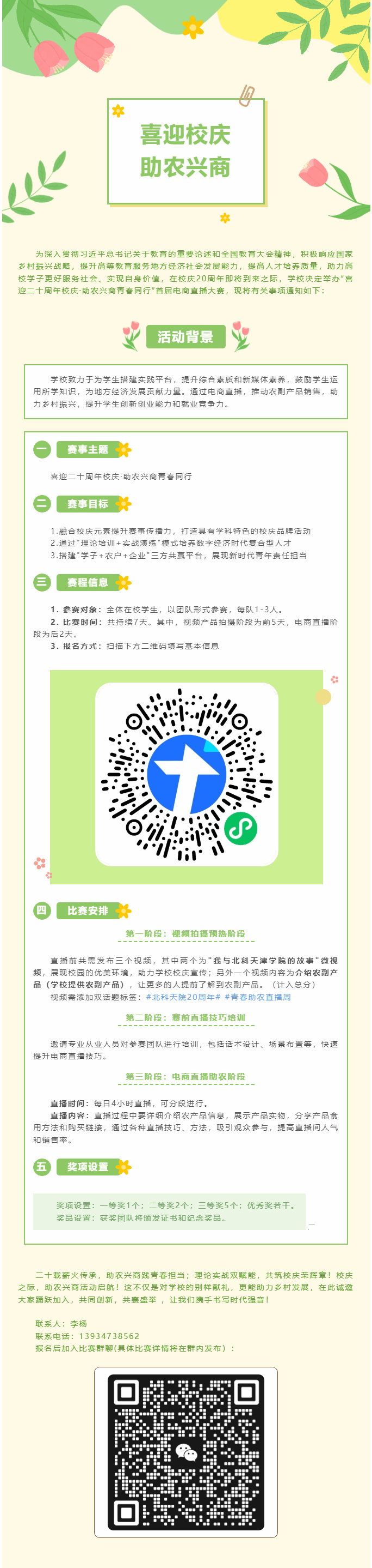 赛事通知|“喜迎二十周年校庆·助农兴商青春同行”北京科技大学天津学院首届电商直播大赛!