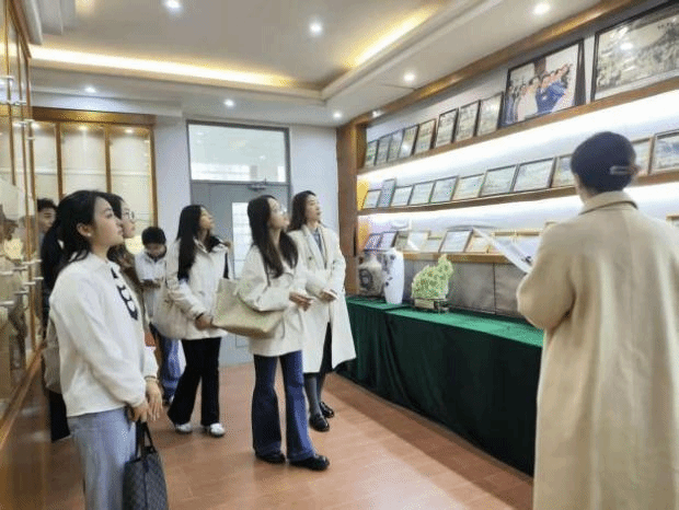 经验分享会后,师生们共同来到盐业展示馆。作为中国盐业领域的核心产学研合作方与重要人才供给基地,天津科技大学素有 “盐业黄埔” 的行业美誉,而这座展示馆正是其盐业学科实力与行业情怀的具象载体,因此是本次活动的重要一站。在学生讲解员的生动讲述中,大家了解到天津科技大学在中国近代盐业方面发展史的浓墨重彩:从久大精盐厂开启中国精盐工业化序幕,到盐务专科学校为全国盐业输送数以万计的专业人才,从传统晒盐工艺的传承演变到现代海水淡化、盐化工技术的突破创新。展柜里造型各异的盐晶标本、复刻的旧制盐工具、历代盐业工作者的手稿笔记,串联起中国盐业从落后追赶到世界领先的奋进足迹,更让师生们深刻体会到“国计民生无小事”的分量。