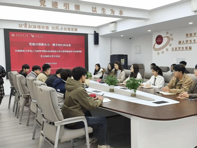 春和景明,惠风和畅。3月23日上午9点,北京科技大学天津学院材料与环境学院学生党支部赴天津科技大学化工与材料学院化材第一学生社区应化本科党支部开展支部共建活动,两所高校以党建为桥牵起校际合作纽带,在沉浸式学习与互动交流中凝聚奋进共识,共绘党建协同发展的崭新图景。