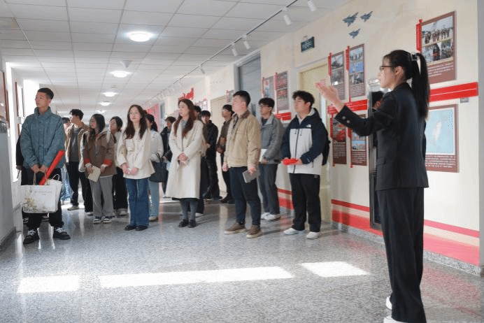活动伊始,两所高校党员师生共同来到国防文化长廊前,在学生讲解员的带领下开启强军征程的沉浸式学习。珍贵的历史影像、详实的国防史料、生动的装备与场景复原,循着强军兴军的时间轴线徐徐铺展:从烽火岁月的小米加步枪到捍卫主权的现代化强军,从艰苦创业的国防奠基到科技自立的硬核支撑,从守土卫疆的忠诚坚守到走向深蓝的大国担当。每一幅图文都承载着使命的重量,每一段征程都激荡着家国的情怀,在回望强军路中深刻感悟“强国必须强军”的时代真谛,让国防意识与爱国初心在心中牢牢扎根。