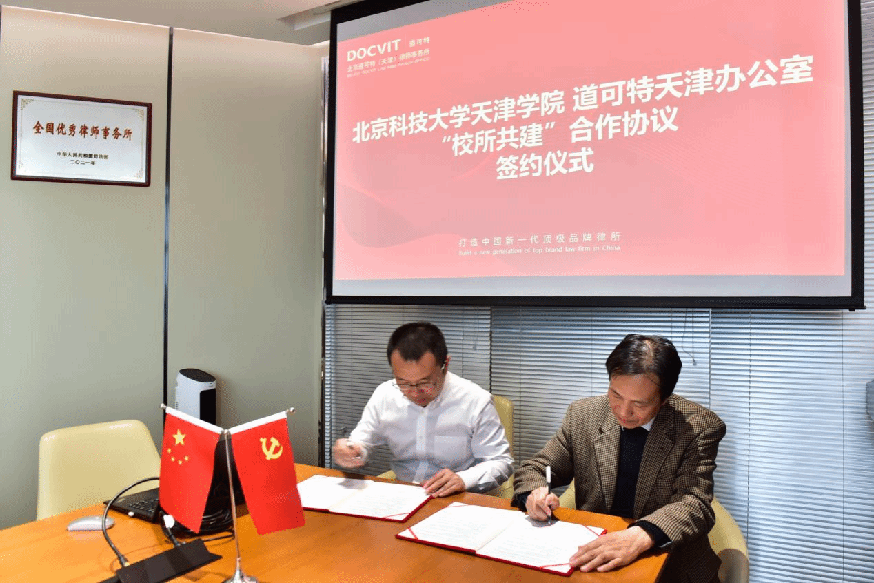2024年4月11日下午,天津学院法律系主任朱京安教授及法律系教师刘国平、李文一、李春光等共赴北京道可特(天津)律师事务所“访企拓岗”,并与该律师事务所签署了合作共建协议。