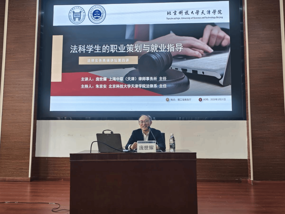 2025年3月31日15时,“校庆20周年”法律系系列活动之法律实务高端讲坛第三讲在理工馆学术报告厅成功举办。上海中联(天津)律师事务所主任庞世耀莅临我院,为师生们带来了一场以“法科学生的职业策划与就业指导”为主题的精彩讲座。此次讲座由法律系主任朱京安教授主持,法律系刘书祥教授、刘国平副教授等教师代表及150余名学生认真聆听了讲座。
