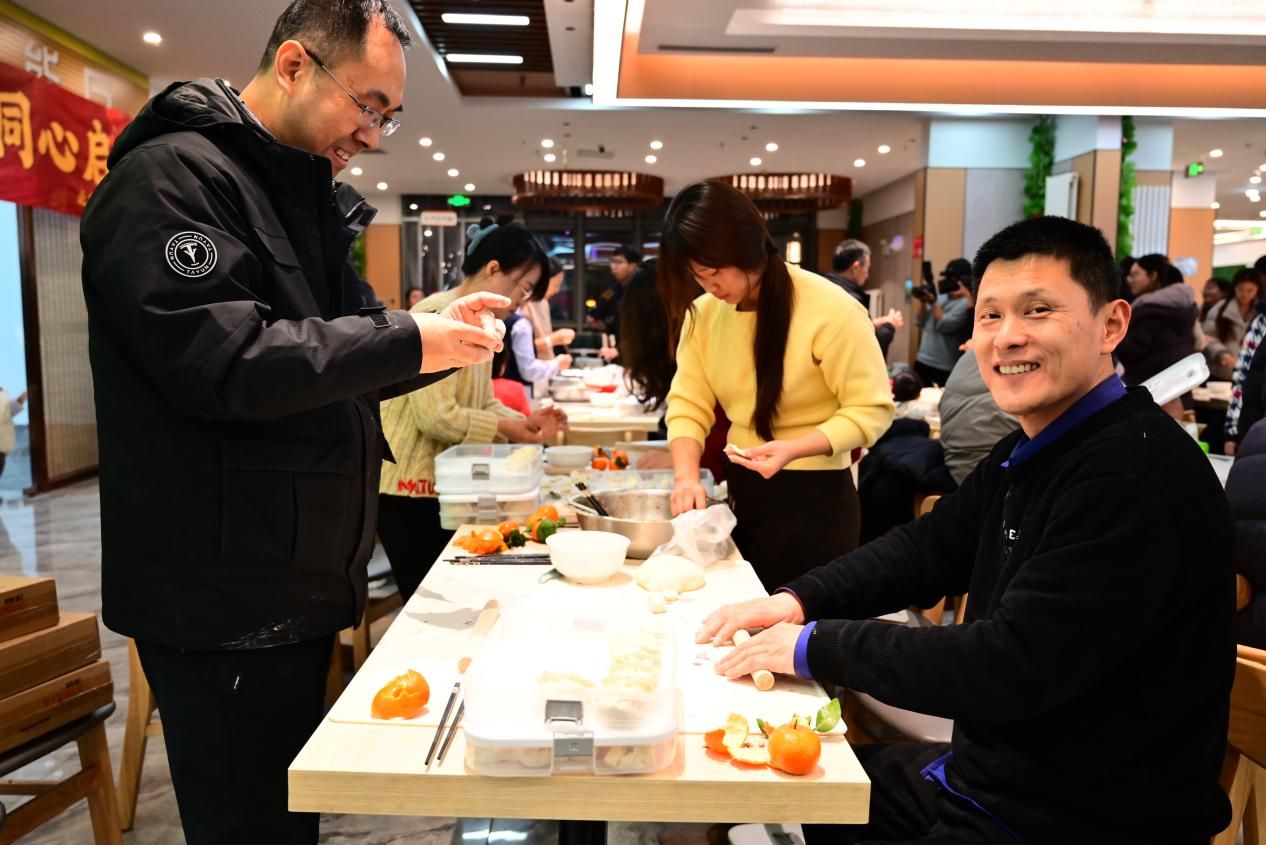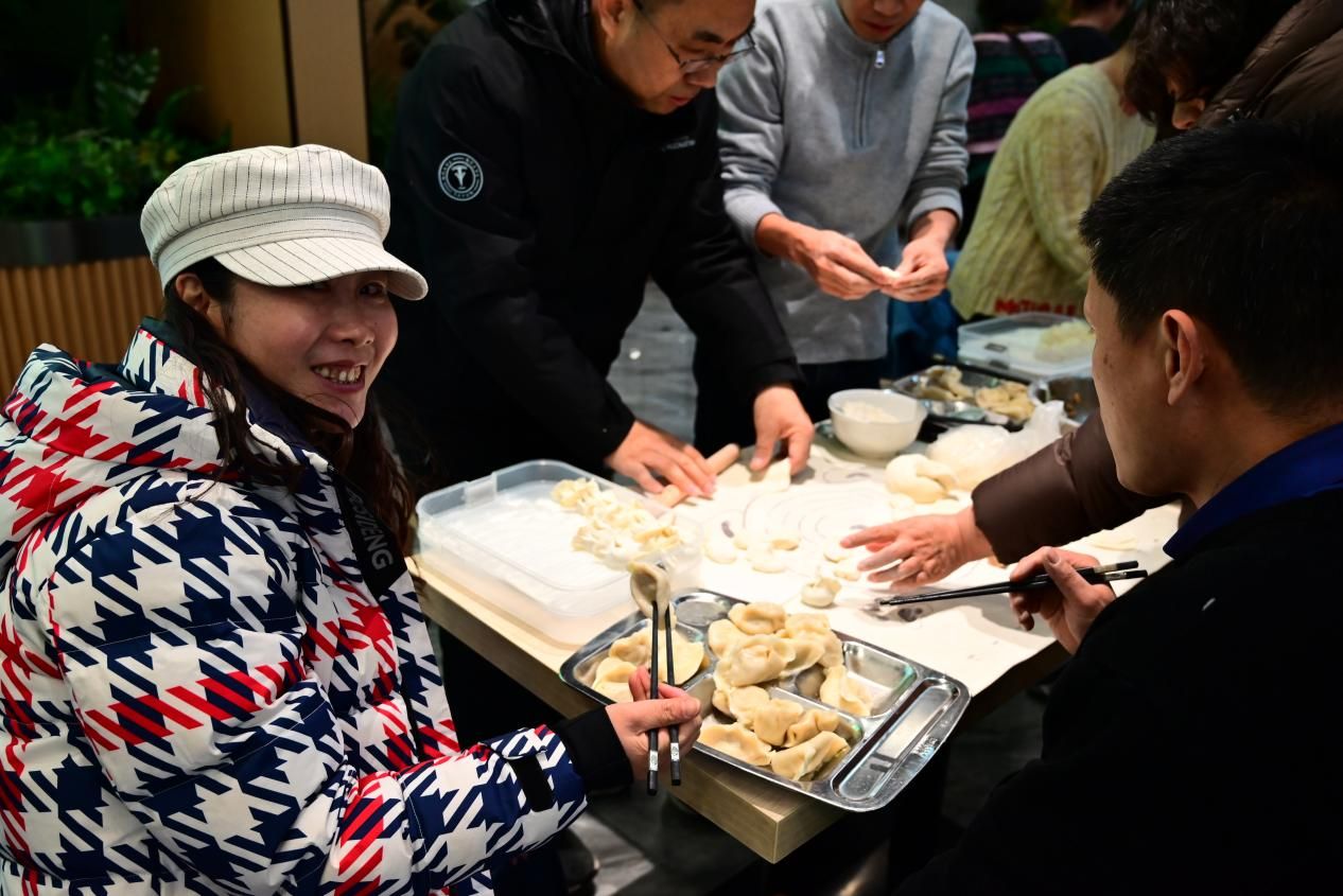 饺子包好后送至食堂后厨煮制,不多时,热气腾腾的饺子便端上餐桌,晶莹洁白的饺皮裹着馅料,鲜香扑鼻。大家围坐一起,品尝着亲手包的饺子,连连称赞。包饺子时随机包了硬皮,选出今年幸运达人。