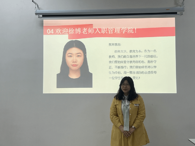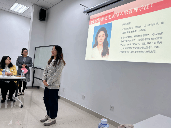 新教师赵丹老师表示非常感谢管理学院能够为新教师举行欢迎仪式。来到天津学院之前曾有过一年的教育工作经历,通过一年的工作发现自己更加热爱教育事业,希望今后能够向有经验的教师多多学习,尽快成长为有经验、有热情、学生喜欢的教师。