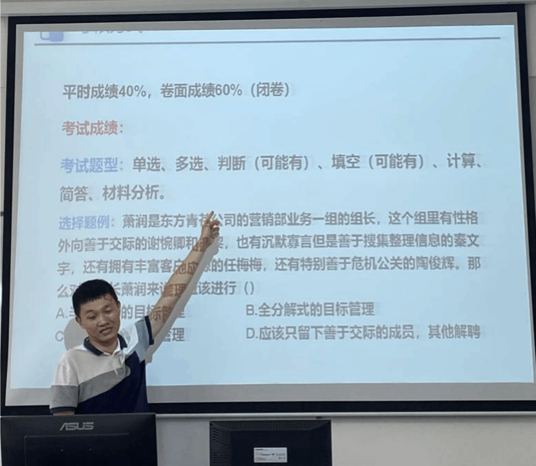 接下来,管理学院的其他老师也依次向大家展示自己的说课,每位老师对待课程的用心程度以及多方式的教学设计给每位老师带来更多的思考。同时,新入职的教师也对自己负责的课程进行了说课。