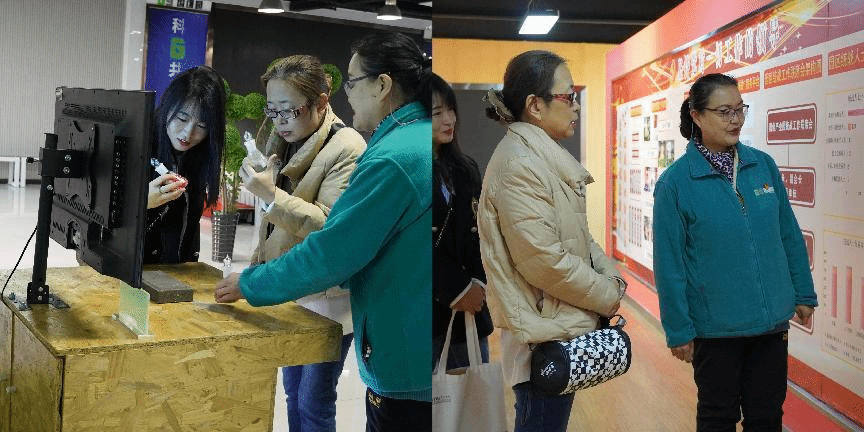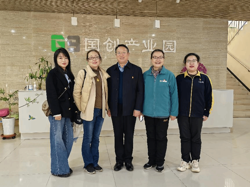管理学院常务副院长王宾容和办公室主任张媛老师在副书记张应军的带领下参观了国创产业园区的科技应用成果展示,并在张书记的介绍下了解了园区的党群服务中心和统战工作站的建设情况。