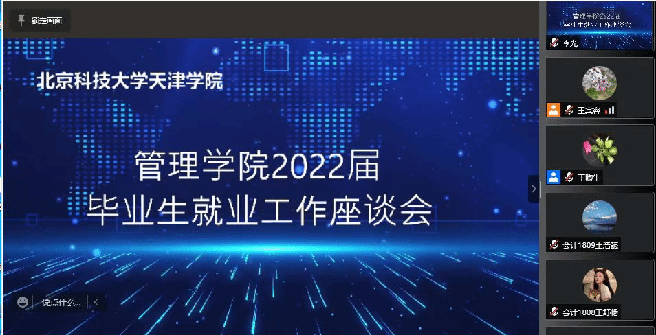 为进一步加强与毕业生的沟通和交流,全面了解毕业生的学习、生活、就业情况,帮助毕业生解决求职过程中遇到的实际问题,推动学院毕业生就业工作找准发力点,落实落细就业措施,更好的用心用情做好毕业生的就业指导和服务工作。4月30日上午,管理学院召开2022届毕业生代表就业座谈会。北京科技大学天津学院党委书记丁煦生、管理学院常务副院长王宾容、教学副院长王晓欣、办公室主任张媛、会计教研室主任任洁、18级辅导员、教师代表及学生代表参加会议,管理学院党总支副书记李光主持会议。