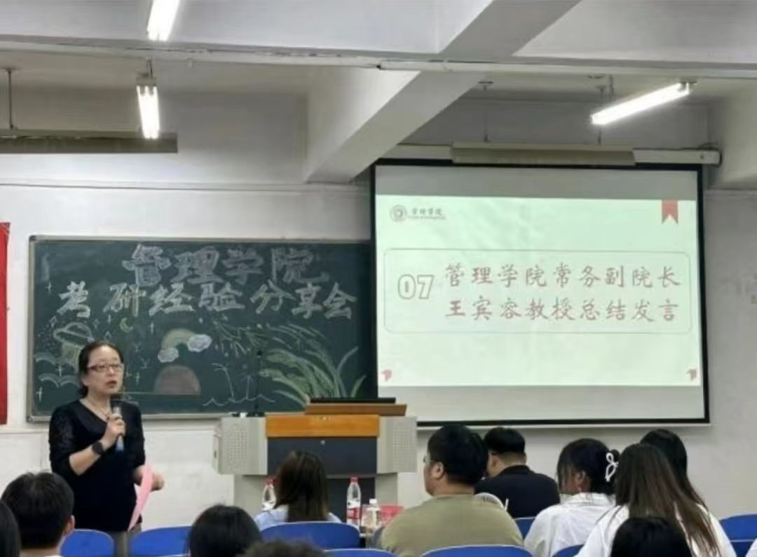 管理学院常务副院长王宾容教授对此次考研分享会进行了总结,再次鼓励同学们积极应对考研,不忘初心,坚持不懈。
