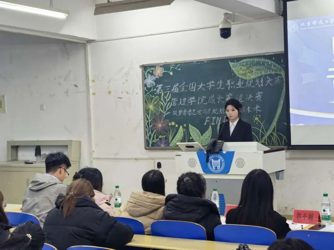 为引导青年学子树立正确的成才观、就业观和择业观,加强大学生生涯教育和就业指导,增强大学生生涯规划意识,11月19日19:00,北京科技大学天津学院管理学院于8教203举办了第三届全国大学生职业规划大赛管理学院决赛,天津市宝坻区史各庄镇人民政府农业农村办公室贾青云,管理学院教师郭千颖老师,管理学院辅导员邵健老师、蔡天宇老师、陈杰老师作为评委出席本次活动。