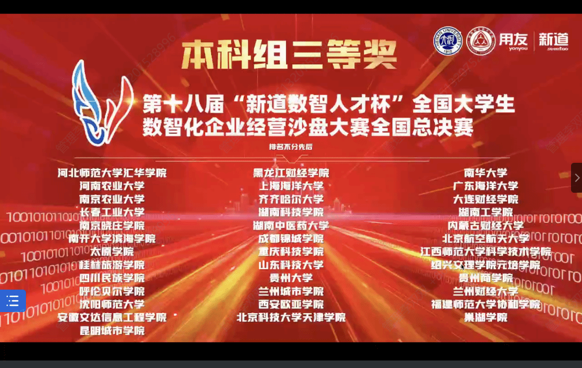 管理学院学子在第十八届“新道数智人才杯”全国大学生数智化企业经营沙盘大赛中再创佳绩