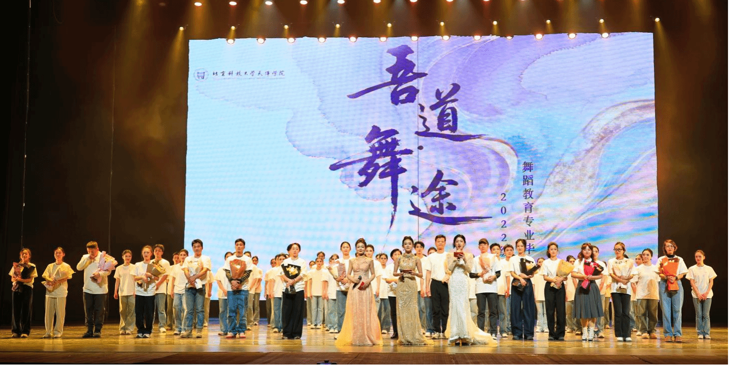 11月26日晚,艺术学院舞蹈系在天津津湾大剧院举办了舞蹈教育专业2022级学生“吾道·舞途”毕业汇报演出,整场演出以舞蹈为媒,生动展示了舞蹈系在专业教育教学、人才培养和文化传承等方面的突出成果。天津市教委体美劳教育处一级调研员刘恒岳,天津音乐学院党委副书记刘迎,天津市文旅局艺术处处长华博,天津歌舞剧院副院长崔菁华,天津市老年大学副校长刘桂祥,天津市群众艺术馆党总支副书记、副馆长韩磊,天津市文联副主席、天津市舞蹈家协会副主席张浩,天津市艺术研究所副所长、天津市舞蹈家协会副主席张巍,天津市曲艺家协会副主席、天津海河传媒中心文艺频道制片人、总导演宋东,宝坻区文联副主席白秀霞以及北京科技大学天津学院党委书记叶振楠和领导班子成员现场观看并给予热烈祝贺。