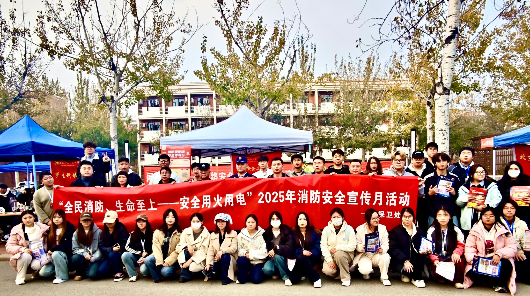 为贯彻落实习近平总书记关于安全生产和消防安全重要指示批示精神,普及安全常识,进一步提升我院师生安全防范意识,2025年11月5日,学院保卫处邀请属地消防、公安机关参与“全民消防 生命至上——安全用火用电”119校园安全文化节线下宣传活动。京津新城消防站站长李晨阳,周良派出所民警丁玉东,保卫处处长周少华、副处长董朋山及全体保卫干部出席了本次活动。本次活动由学生安全工作委员会承办。