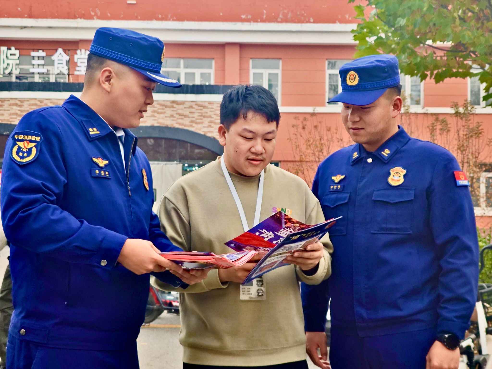 今年的11月9日是第34个全国消防日,今年的主题是“全面消防,生命至上——安全用火用电”。本次线下宣传活动,保卫处结合师生校园生活特点和近期高发安全案例重点,精心设计宣传页,涵盖宿舍用电安全、实验室消防安全、食堂燃气安全等多个生活场景。活动现场,李站长还为同学们普及了各类火灾的成因、预防措施以及应急处理方法;丁警官则为同学们分享了近期高校网络电信诈骗高发案件特点。