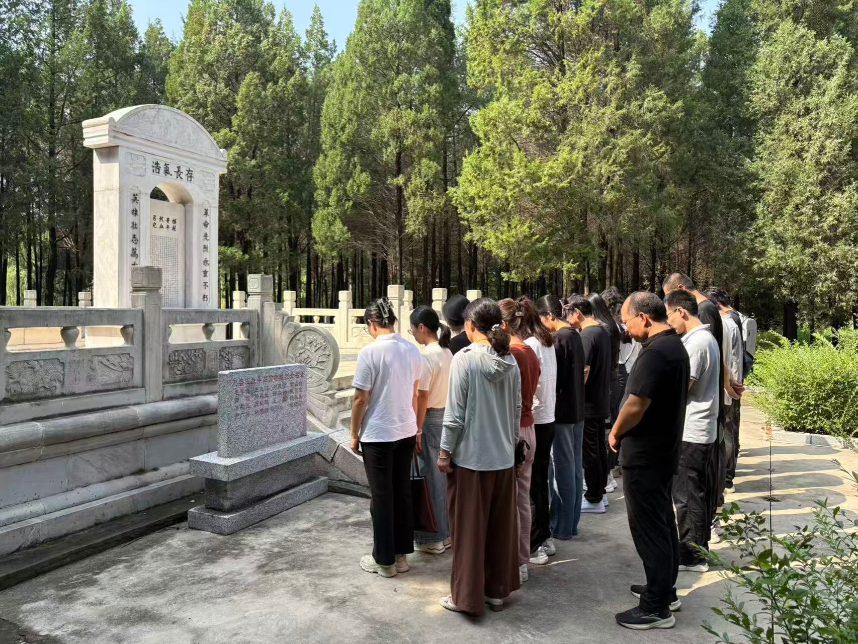 参观结束后,全体教师来到革命烈士纪念碑前。支部书记带领大家向革命烈士默哀,表达对英烈的深切缅怀和崇高敬意。默哀结束后,教师们纷纷表示,要铭记历史,珍惜来之不易的和平生活,传承和弘扬革命先烈的爱国精神和奋斗精神,以更加饱满的热情和更加昂扬的斗志投入到教育教学工作中。