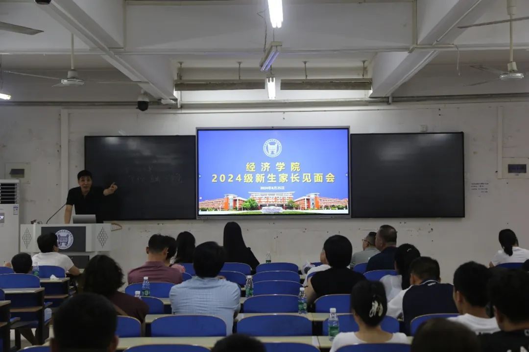 新生报到第二天经济学院召开了新生家长见面会,见面会上老师向新生家长们介绍了经济学院各个专业的学习方向,同时耐心的对家长们关心的各个事项进行详细解答,进一步深化家校联动。