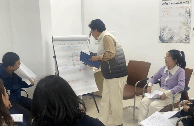 培训的核心内容围绕BOPPPS有效教学模型展开,通过引导员精心设计的各个环节活动,包括热身暖场、主题课程、微课演练、引导反馈、团队互评、心灵碰撞与学情评测分析等环节,将理论与实践有机且高效地融合在一起。在引导员的带领下,将12名学员在相互支持的和谐环境中彼此呈现微格教学演练,通过引导和学员反思性回馈,不断迭代和升级先进的教育教学理念、方法与技能,在实践中不断突破自我。学员间形成了同侪互助的学习氛围,不断点燃教育教学热情,逐步树立了“以学习者为中心”的教学理念。