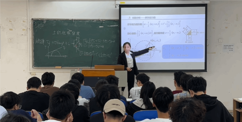 路维老师以工程中的山体滑坡案例为例,详细讲解了土体抗剪强度理论,并强调理论与实际应用的结合。她通过使用多样化的信息技术手段激发师生互动,显著提升了学生的课堂参与度。此外,他还巧妙地将思政元素融入课程内容中,实现了知识传递与价值引导的有机结合。