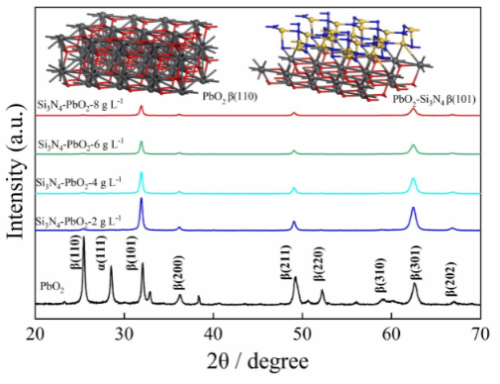 Figure 2 XRD patterns of Si3N4-PbO2 electrode and PbO2 electrode