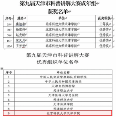 近日,由市科技局、市教委、市科协、市总工会联合举办的第九届天津市科普讲解大赛公布获奖名单,我院劳动学院教师团队凭借出色的表现,荣获成年组三等奖1项、优秀奖4项。同时,我院被评为本届天津市科普讲解大赛“优秀组织单位”。