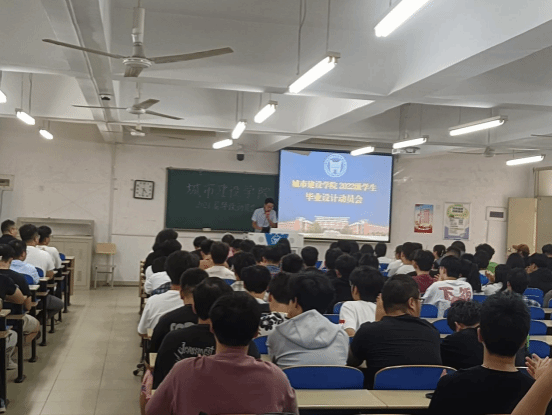 动员大会由城市建设学院杨建功和石晓娟老师主持,城市建设学院党总支书记何欢欢老师首先作动员讲话,她提醒同学们关注自身学业情况,强调毕业设计在大学阶段所处的重要位置,建议同学们把握住秋季招聘会的机会,多多投递简历进行面试,希望每一位同学都能够完成属于自己的高质量就业。