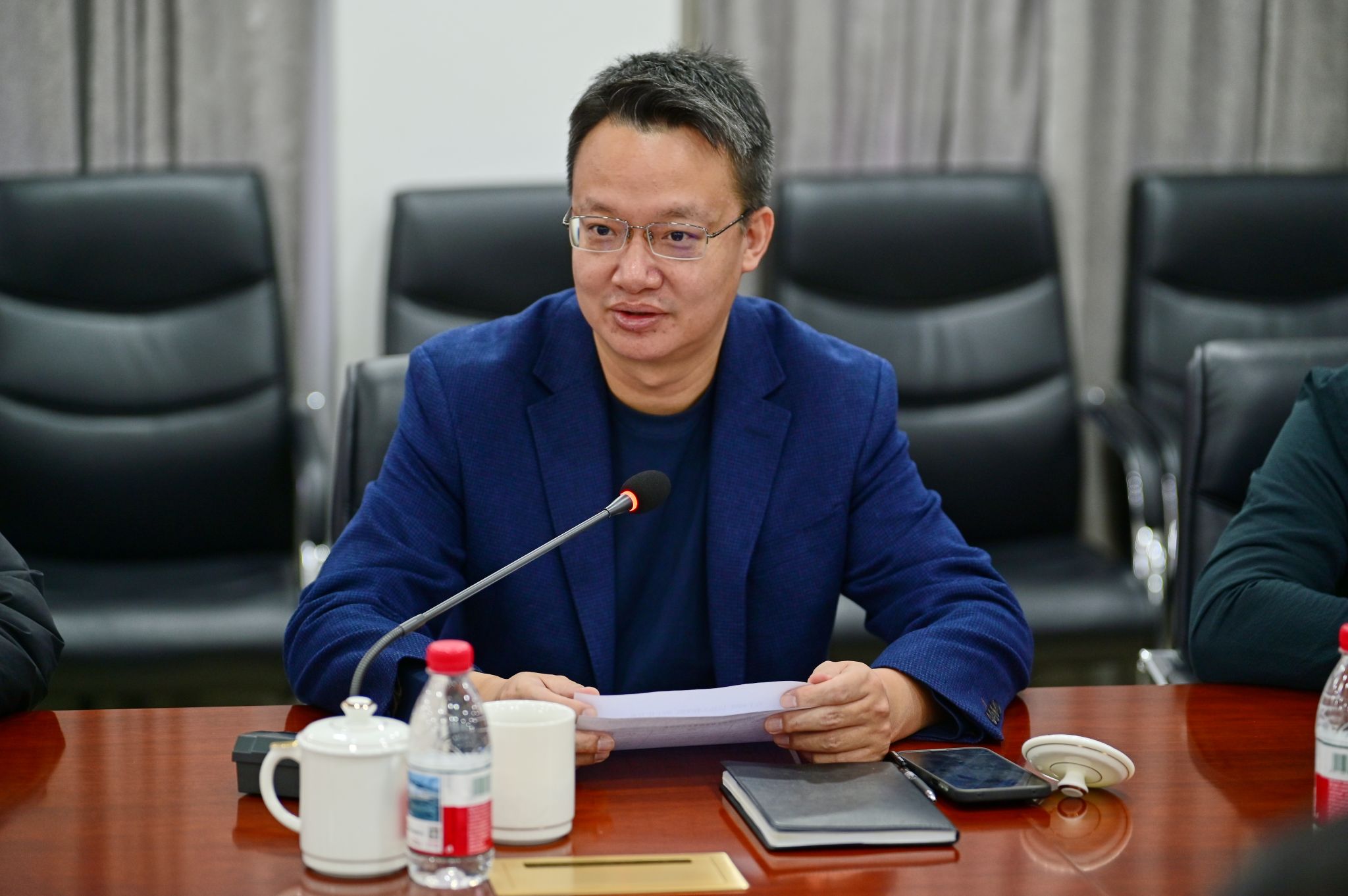 最后,叶书记作总结讲话。叶书记充分肯定信息学院办学成效与改革思路,强调学院要坚持党建引领、应用定位、AI 优先、交叉融合,目前已经具备较好的全程导师加六维融合工作基础,信息工程学院要先行先试,探索成型模式,作为人工智能方向核心承载单位,要全面支撑全校各专业 AI 交叉融合转型。随后,对信息学院下一阶段工作提出明确要求:一是全面加强党建与业务深度融合,筑牢安全稳定底线;二是落实2026 版培养方案 “挤水、留白、加餐” 要求,对接产业需求、增设交叉微专业,深度对接产业需求;三是做实产业学院,深化校企课程共建、联合授课与实习就业协同;四是聚焦人工智能学科建设,补短板、强弱项、铸特色,提升核心竞争力。