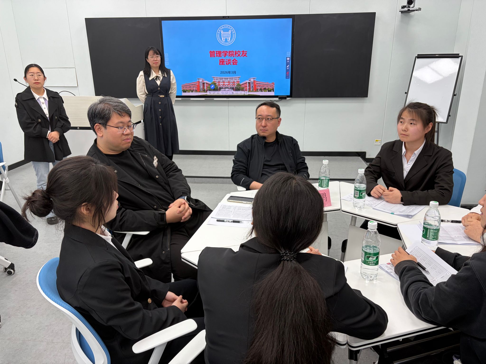 为深入贯彻落实《教育强国建设规划纲要(2024—2035年)》中关于人才强国、科教兴国的战略部署,搭建校友与在校学子的深度沟通桥梁,精准助力会计学和财务管理专业学生明晰学业与职业发展路径,传承学院优良学风、凝聚发展合力,2026年3月28日,管理学院邀请多位优秀校友荣归母校,与在校相关专业学子举办经验分享交流会。管理学院常务副院长王宾容老师出席活动并致辞,强调校友是学院发展的宝贵财富,是连接校园与社会的重要纽带,更是助力学子成长、服务经济社会高质量发展的重要力量。