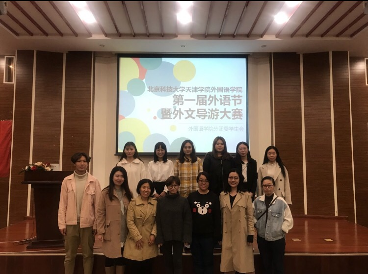另外,为了加强英语专业学生对专业知识的理解,锻炼学生的口才及表达能力,北京科技大学天津学院外国语学院2019年度外文导游大赛作为外语节第一个活动也在当天拉开序幕。此次决赛邀请的评委老师有:外国语学院党总支书记张莉、党总支副书记张添善、分团委书记李萌,教师张绚、安传达、张晓宇、孙影、17级辅导员杨艳秋。