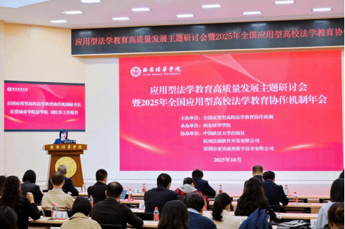 10月18日,应用型法学教育高质量发展主题研讨会暨2025年全国应用型高校法学教育协作机制年会在西安培华学院召开。本次会议由全国应用型高校法学教育协作机制主办,西安培华学院承办,中国政法大学出版社、杭州法源软件开发有限公司以及深圳市亚讯威视数字技术有限公司协办,吸引了来自全国30余所高校的近百位专家学者齐聚一堂。会议聚焦“数智赋能,实务导向,融通中外:应用型法学教育的创新与发展”主题,从人工智能赋能、法学专业品牌建设、涉外法治人才培养三个视角,探寻应用型高校法学教育高质量发展路径。