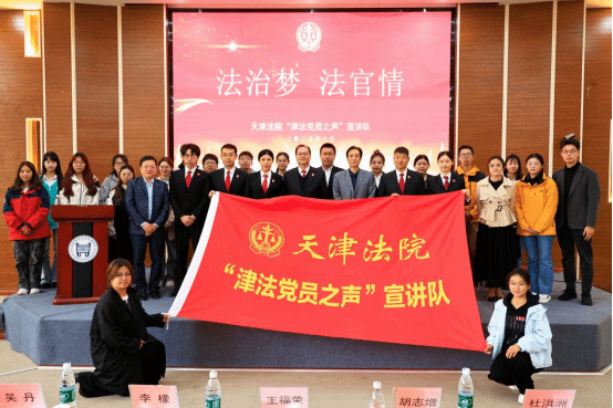 10月10日上午,“津法党员之声”宣讲队应邀来到北京科技大学天津学院,为法律系师生开展“法治梦 法官情”主题宣讲。本次来校宣讲队成员有天津市高级人民法院法宣处处长王福荣、教培处副处长李檬、机关党办四级调研员胡志增、天津市第三中级人民法院知产庭法官助理吴丹、河北区人民法院执行局法官助理赖柯霖、天津法官学院讲师杜洪洲。法律系主任朱京安教授、实践教学指导中心主任刘国平副教授,法学教研室主任李文一老师、教师代表刘少华、董祺、王一然、唐秋香等老师以及法律系部分学生参加了此次宣讲活动。
