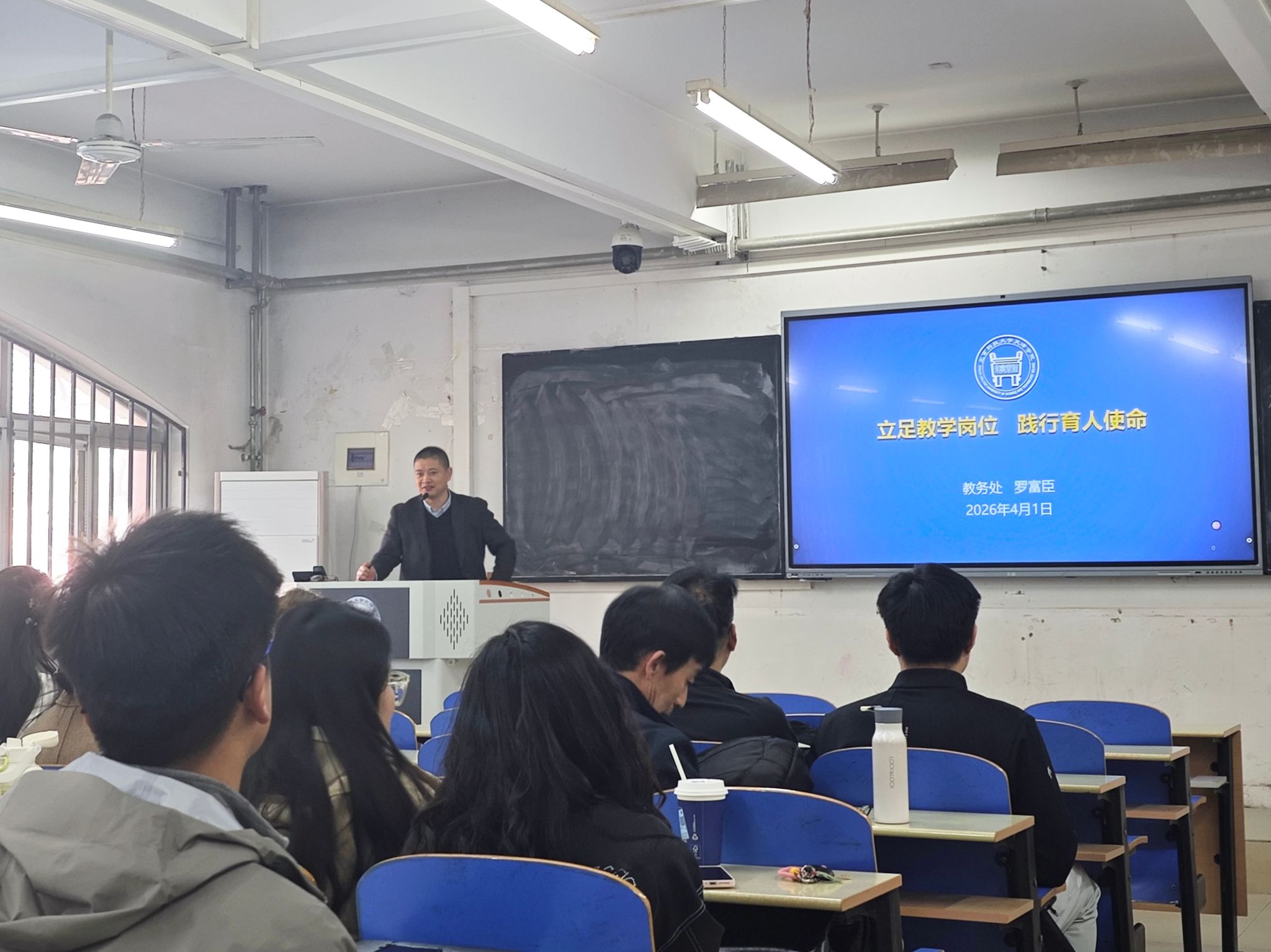 教务处处长罗富臣以“立足教学岗位 践行育人使命”为题,系统梳理了教务处组织架构、科室职能基本情况,深入解读了学院专业、课程、教材建设及教研教改工作情况,并介绍了教学质量监控体系和教师培养体系的建设情况。他紧扣新时代“四有”好老师标准,要求新教师掌握教学基本功,严守课堂纪律,规范教学管理。他强调,教师要严把教学关,不仅要精研专业知识,更要将课程思政与价值引领融入课堂,切实承担起塑造灵魂的育人使命,为构建高水平人才培养体系筑牢根基。