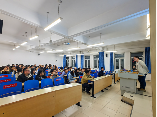 本次交流会由英语专业教研室主任张晓宇老师主持,外国语学院常务副院长滕建辉、外国语学院唐小彬老师、张佳康老师、张同旭老师和英语专业2021-2023三个年级的60多名学生积极自愿参加交流会。
