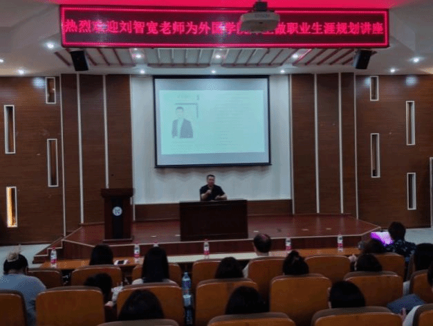 6月19日上午,外国语学院在理工图书馆学术报告厅举办了2022-2023学年第二学期集中实践暨职业生涯规划系列活动,邀请天津华译语联科技股份有限公司董事长刘智宽先生做讲座,题目为“语言服务业发展新形势及外专学生就业生涯规划”,外国语学院常务副院长滕建辉、副院长张绚,英语、日语、朝鲜语专业教研室主任及任课教师、各专业学生参加了讲座。