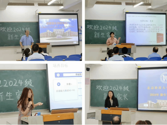 会上,外国语学院院长滕院长首先对2024级新生及家长的到来表示热烈欢迎,对外国语学院整体情况、师资等做了简要的介绍,并对新生寄予了希望。随后,各专业教研室主任对于专业的基本情况、师资力量、专业特色、课程设置、教学目标和就业前景做了详细介绍。深入浅出地阐述了外国语学院的教学理念和育人目标,让家长们对学院的教育教学工作有了更加全面的了解。
