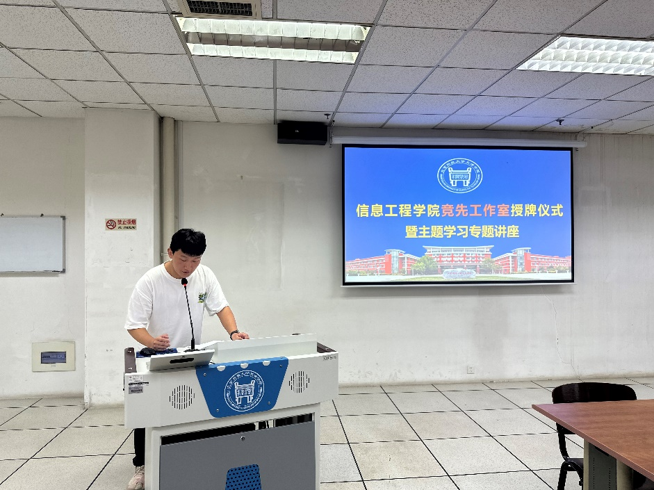 2024年6月5日下午15:00,信息工程学院于社科馆201举行“竞先工作室”授牌仪式暨首场主题学习专题讲座活动。