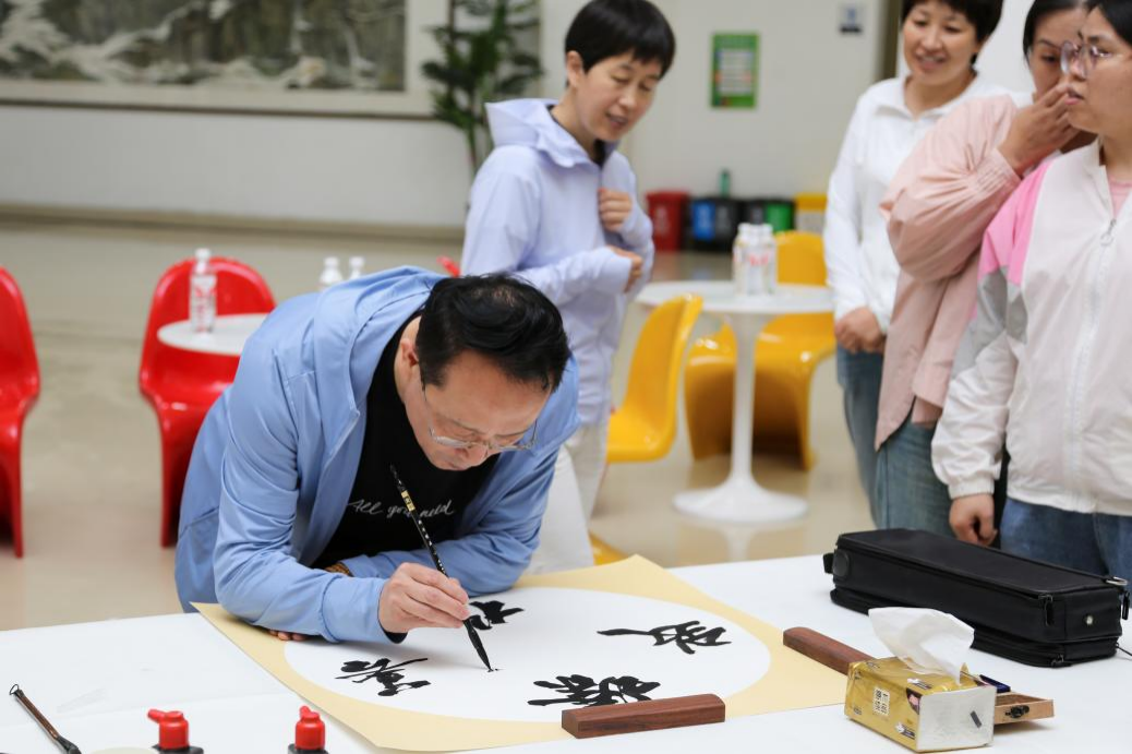 讲座结束之后,与会人员来到一楼大厅,由各位专家进行现场笔会。专家们挥毫泼墨,创作了二十余幅大气磅礴、妙手丹青的书画作品,引起现场观众的阵阵赞叹。