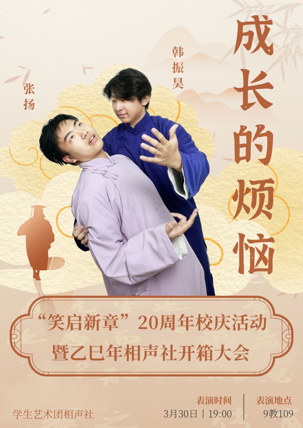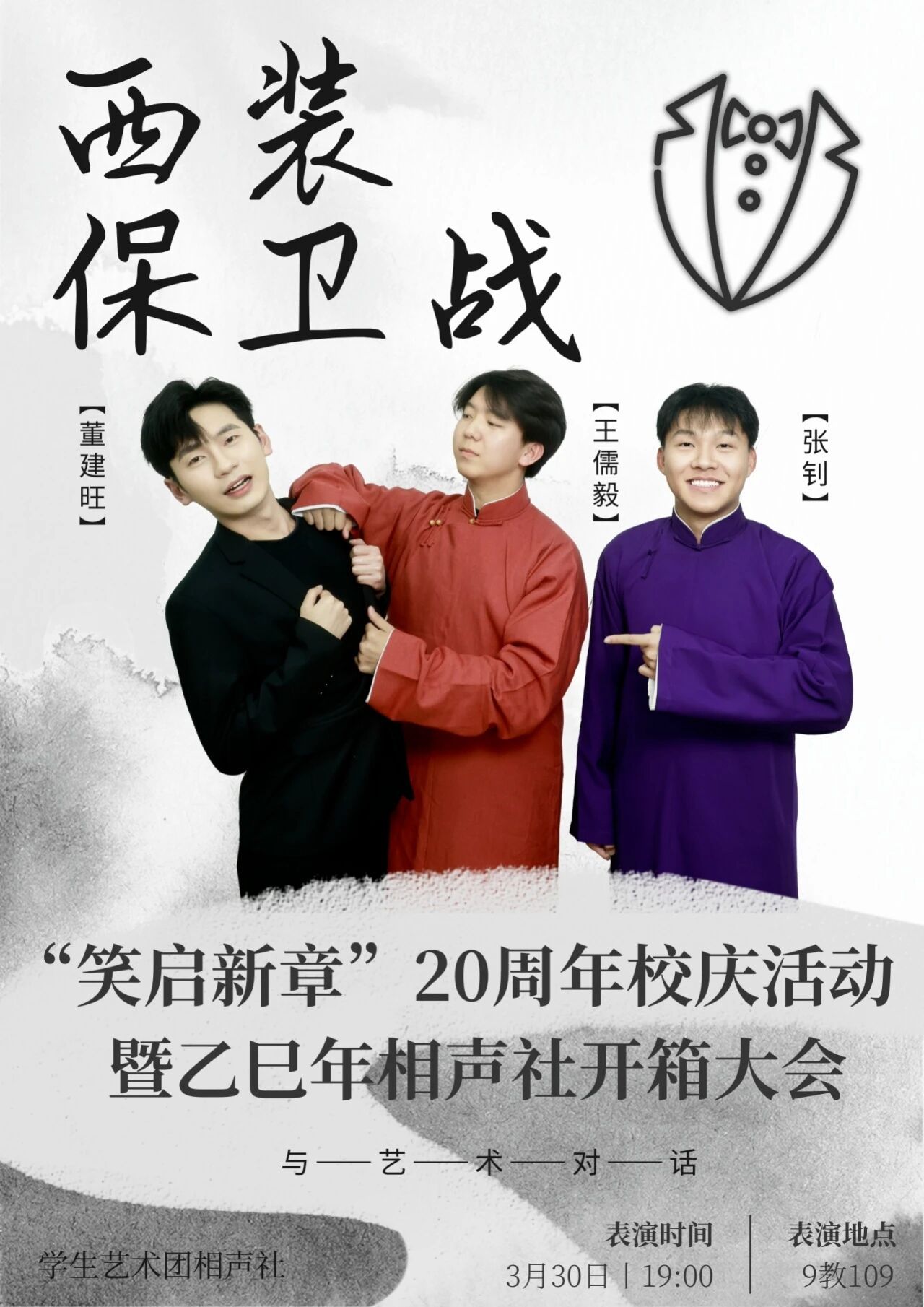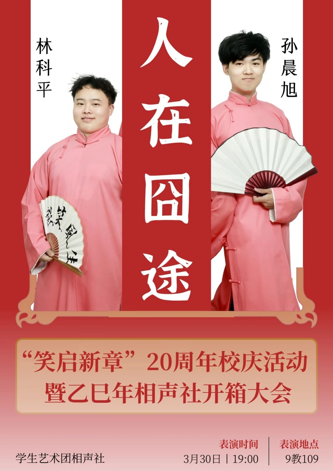 长衫儒雅立玉堂,醒木惊堂满座静,折扇轻摇笑满堂。三寸舌绽莲花妙语,四方台演百态炎凉。说学逗唱皆文章,嬉笑怒骂尽文章。檀板清音响彻八方,京韵乡音余味悠长。捧逗相偕承古韵,薪火相传启新章。