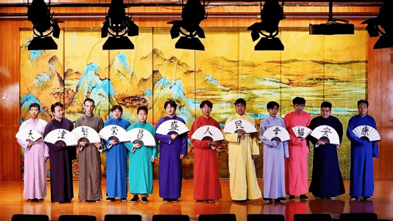 身着各色长衫的曲艺表演者们列队而立,折扇轻摇间,传统曲艺的韵味扑面而来;而在另一幕舞台上,年轻的表演者们用生动的演绎,将小品的趣味与魅力尽数展现。