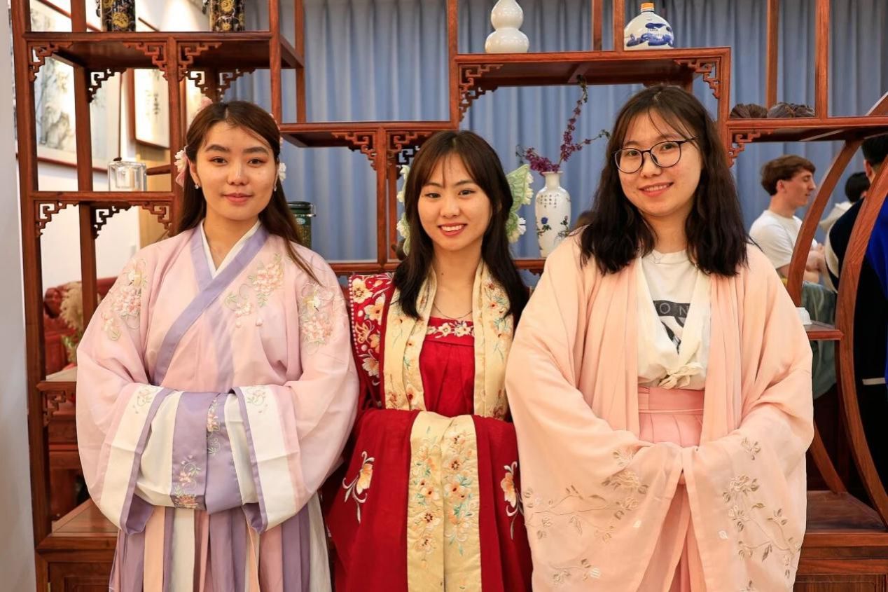 紧接着,汉服体验环节成为了全场瞩目的焦点。各式各样精美绝伦的汉服陈列眼前,留学生们兴致勃勃地挑选着自己心仪的款式。在工作人员耐心细致的帮助下,他们小心翼翼地穿戴起来。不一会儿,只见他们身着汉服,或衣袂飘飘,或英姿飒爽,仿佛从千年之前的时光中缓缓走来。大家你一言我一语,兴奋地交流着,拿出手机相互拍照留念,欢声笑语回荡在馆内。在这一过程中,他们亲身感受着汉服所蕴含的千年华夏服饰文化魅力,体会着传统服饰所承载的礼仪与审美。