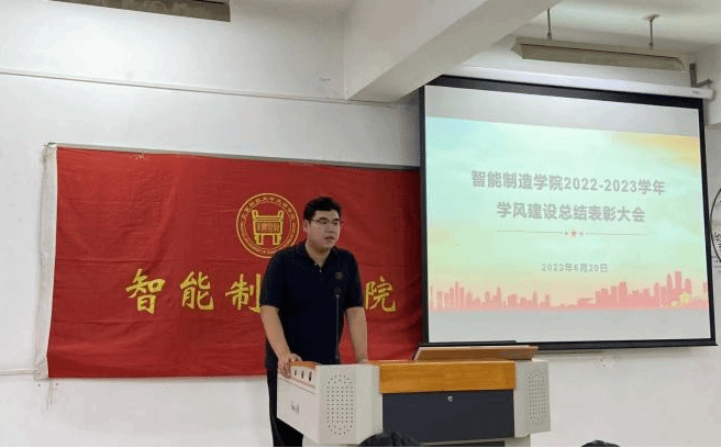 本次总结表彰大会是智能制造学院学风建设工作的一个阶段性总结,在接下来的工作中,学院师生将以学习贯彻习近平新时代中国特色社会主义思想主题教育为契机,以更加激扬的姿态,主动传承发扬优良学风,进一步推动学院教育教学高质量发展。